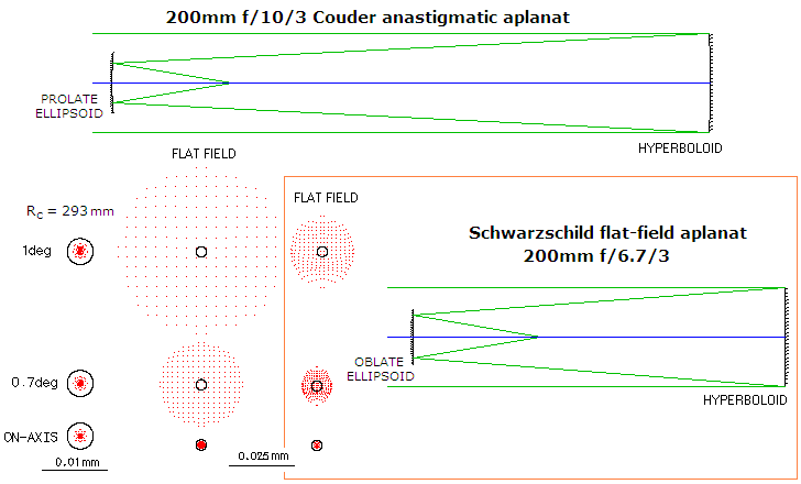 maximum secondary magnification is lower than in the flat-field aplanat.